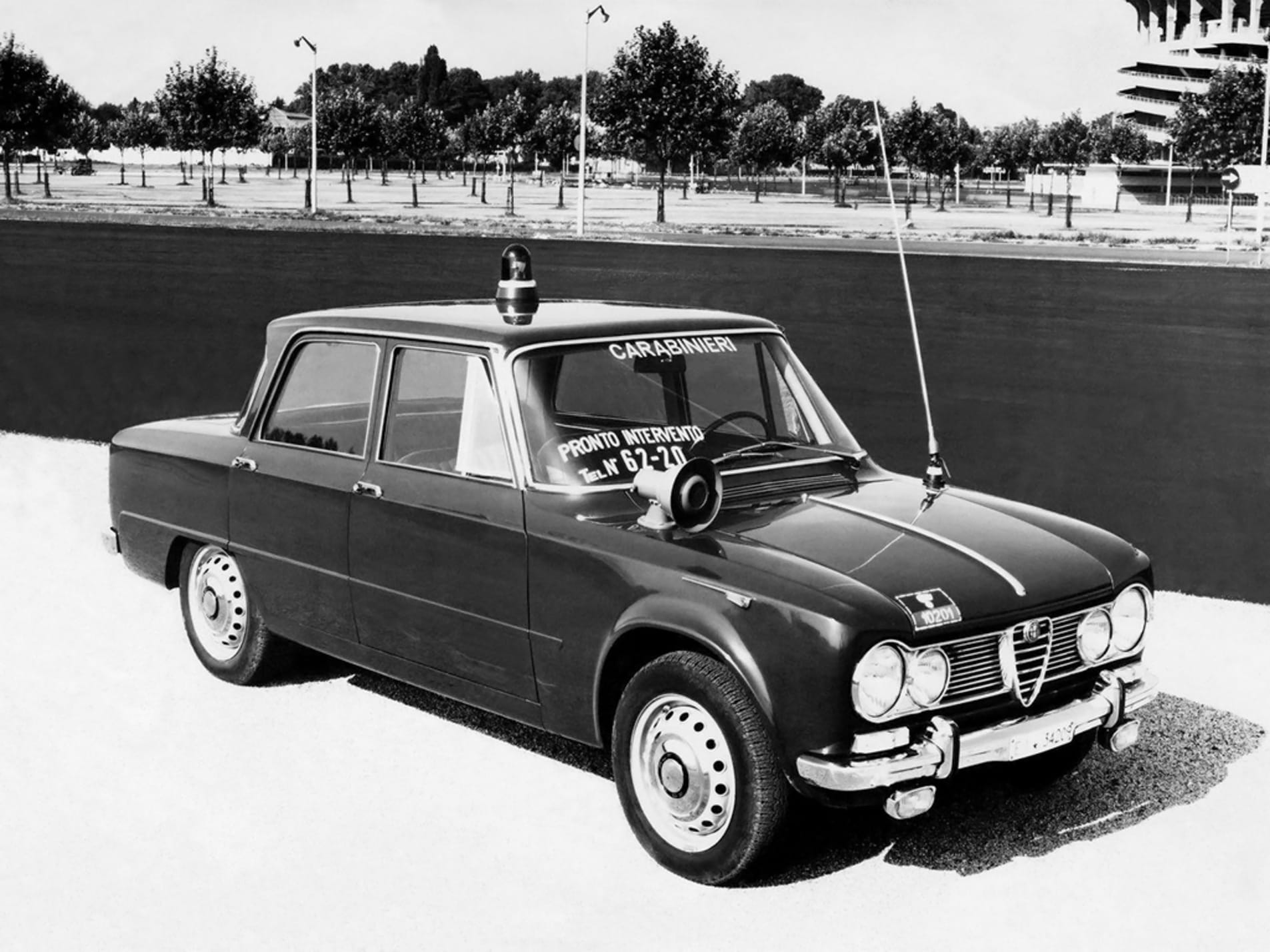 Les petites berlines sportives restent l’apanage de la Squadra Volante durant toutes les années 50, mais avec le lancement de la Giulia, qui remplace la 1900, les choses changent : les carabiniers veulent eux aussi leur voiture rapide, et en particulier la Squadra Mobile. À l’instar de leurs homologues de la police, ils reçoivent en dotation, en 1962, la Giulia TI dotée d’un 4 cylindres de 92 ch DIN, une voiture vive, agile, rapide, qui reçoit rapidement son surnom : la Gazelle. Après la 1900 emblématique des fifties, place à la Giulia des sixties… Après la Panthère, la Gazelle…