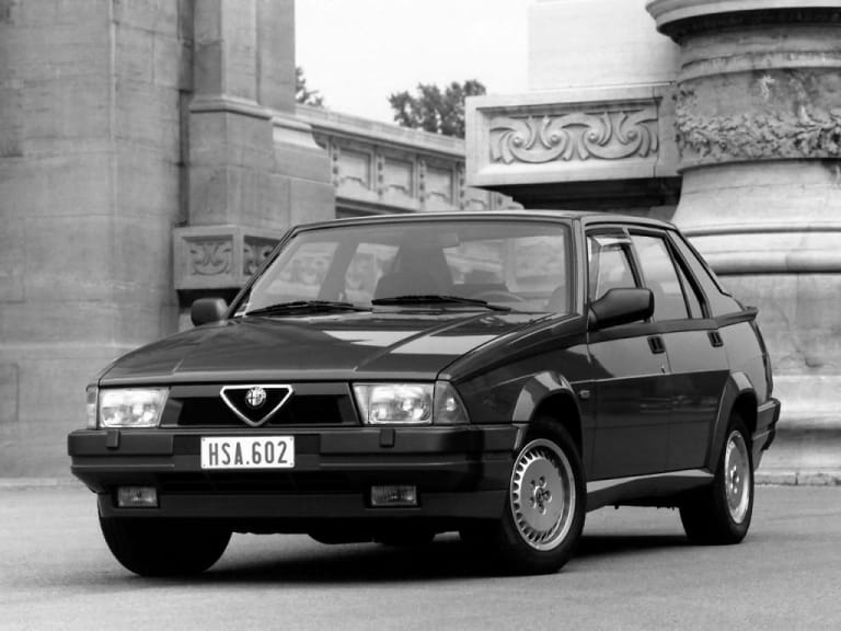 Apparue en 1985, la 75 n’a pourtant rien d’une voiture révolutionnaire, puisqu’elle reprend quasiment tout de la Giulietta, qui elle même reprenait tout de la Giulia. Autant dire que si son look sonne très 80’s, sa conception est quasi 60’s : une ancienne moderne quoi. A l’intérieur pourtant, ne cherchez pas l’ambiance des années 60 : tout est carré, tout est en plastique, et un ordinateur de bord « d’époque » vous indique si tout va bien.