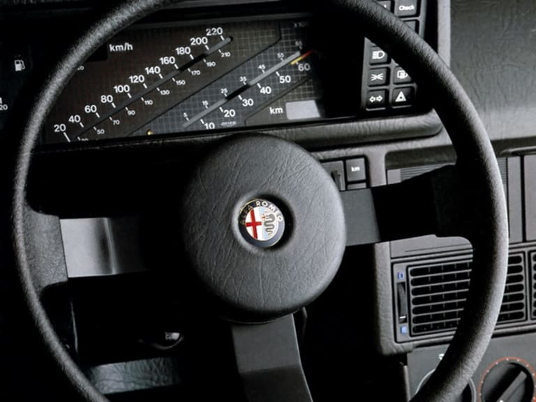 Une Renault 9 aussi grosse qu’un bœuf, affublée d’un attaché case logé dans la planche de bord, de vitres électriques au plafonnier et d’un spoiler à géométrie variable : telle est l’improbable équation proposée par Alfa Romeo pour son nouveau haut de gamme en 1984. Mission impossible ?