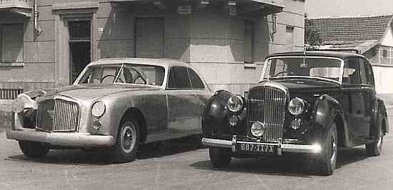 Un autre prototype Cresta, avec sa calandre plus large et moins haute Mais revenons en 1948. Cette année-là, Jean Daninos a l’idée de proposer un coupé Bentley 4 places aux lignes plus modernes. Il a déjà en tête l’envie de produire une voiture de luxe à sa convenance. Il va pendre contact avec la société anglaise Rolls-Royce, propriétaire de Bentley depuis 1931, et obtient son accord pour la réalisation de prototypes. Rolls Royce a justement dans l’idée de proposer un coupé aux lignes plus fuyantes que ses actuels modèles. Daninos va donc contacter Pinin Farina (des Stabilimenti Farina, la société de Giovanni, son frère, factotum pour l’occasion) qui va dessiner et construire 2 prototypes (peut-être 3 selon certaines sources), sous le nom de Bentley Cresta.