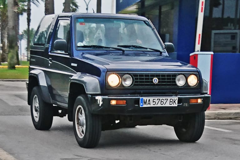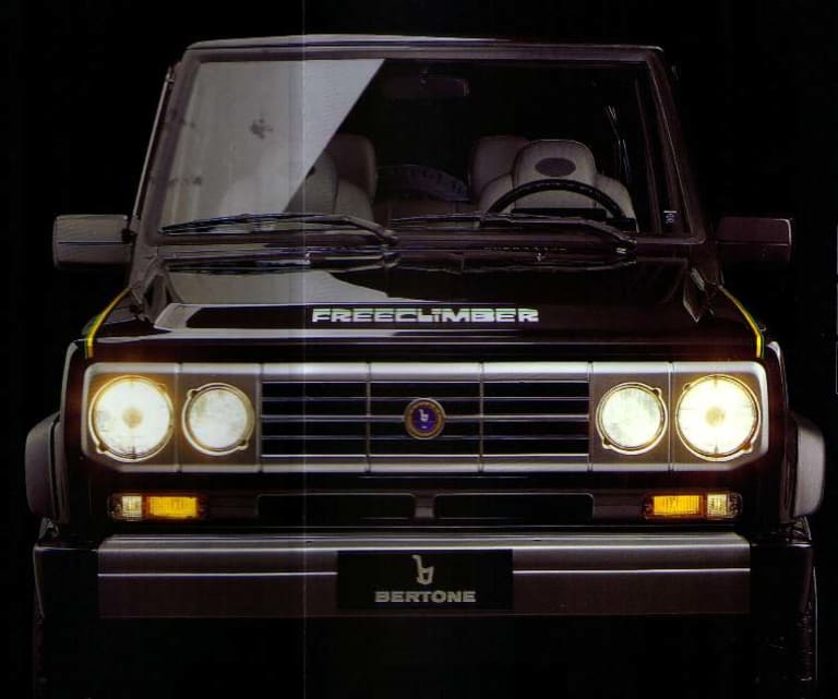 A cette époque, la mode n’était pas encore à ce qu’on appelle aujourd’hui les SUV. Le marché du 4×4 était avant tout « utilitaire » et répondait à des réels besoins. Pourtant, le succès du Range Rover (ou du Jeep Cherokee), laissait entrevoir l’émergence d’un nouveau marché, plutôt haut de gamme. Bertone décida donc de vendre un petit 4×4 de luxe (ce qui, avouons-le, était assez visionnaire en 1988). Pour ce faire, on utilisa la base d’un 4×4 peu ou pas connu en Europe, le Daihatsu Rocky. Pour adapter le Rocky à son projet, Bertone retravailla la face avant, l’embrayage aussi, mais surtout l’intérieur qui devait impérativement monter en gamme. Le Freeclimber (c’est le nom de ce nouveau 4×4), se dotait donc de sièges spécifiques, de cuir et d’alcantara, et d’une instrumentation enrichie. Un arceau de sécurité était même rajouté à l’arrière.