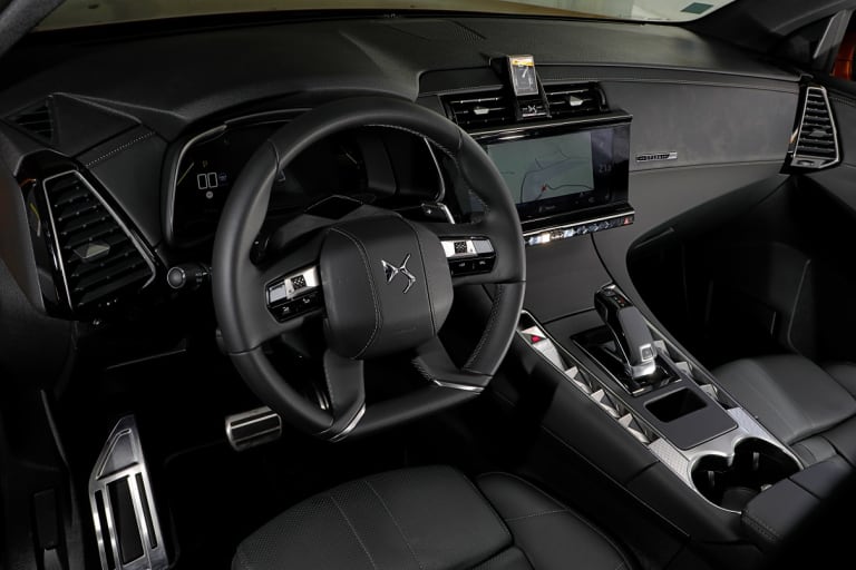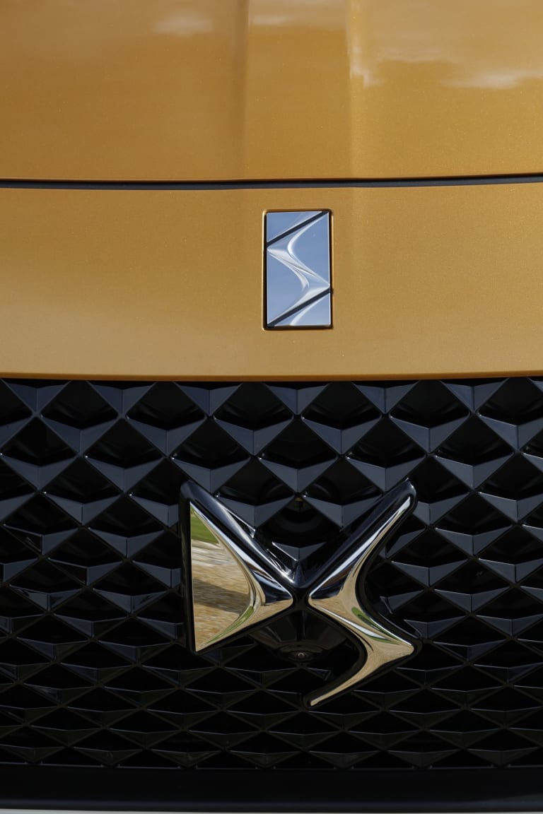 Le design extérieur est ce qu’il est, dans la tendance DS depuis quelques années, et notamment les updates des DS 3, 4 et 5. Il y a de l’excellent, du bon et du moins bon. Le travail des feux est vraiment remarquable, à l’avant, avec ces « Apéricubes » qui tournent, mais surtout à l’arrière, avec ces écailles relevées qui se parent de rouge… Voilà des détails qui fleurent bon le haut de gamme de cette fin de décennie : c’est peut-être un détail pour beaucoup, mais pour moi, cela veut dire qu’il y a une vraie réflexion sur le détail. La calandre en revanche est difficilement cernable à mon goût : trop de crosses chromées qui ne fixent pas le regard, il en devient impossible de se la remémorer intérieurement. Par certains aspects (un peu manga, l’influence asiatique?) cela rappelle les Lexus : un design fort, mais difficilement identifiable par trop d’effets de style.
