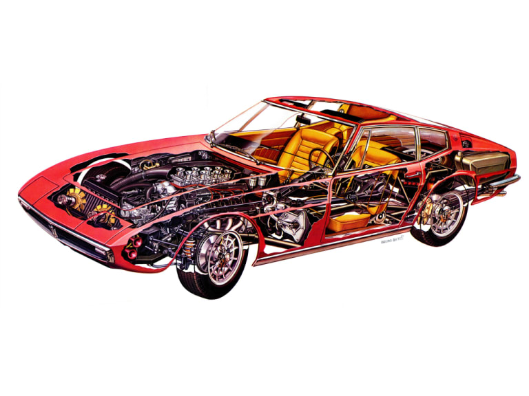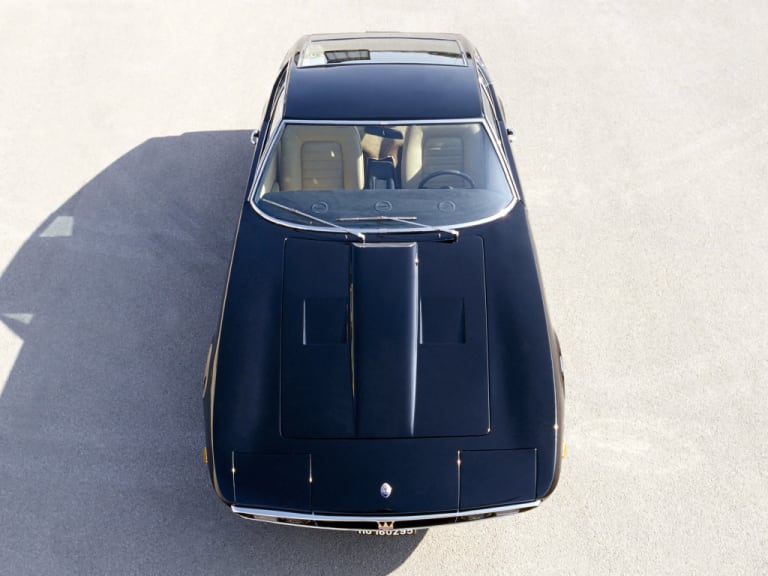 Dans les années 60, les officines italiennes allaient produire certaines des plus mythiques sportives. Lamborghini ouvrait le bal fin 1965 en présentant la Miura, stricte 2 places à moteur arrière (un V12) tandis que Ferrari fermait le ban avec une Daytona en 1968 (12 cylindres aussi, mais à l’avant). A cette époque, Maserati était toujours sous le contrôle de la famille Orsi, et en particulier du fils d’Adolfo, Omer « Omar » Orsi. Ce dernier voulait lui-aussi son grand coupé au long capot : hors de question de laisser seul Lamborghini sur le créneau. Fasciné par les réalisations de Giugiaro chez Bertone, notamment l’Iso Rivolta Grifo, Omar Orsi ne jurait que par lui. Il commanda donc auprès de Ghia, le nouvel employeur du designer, le dessin de son futur coupé.