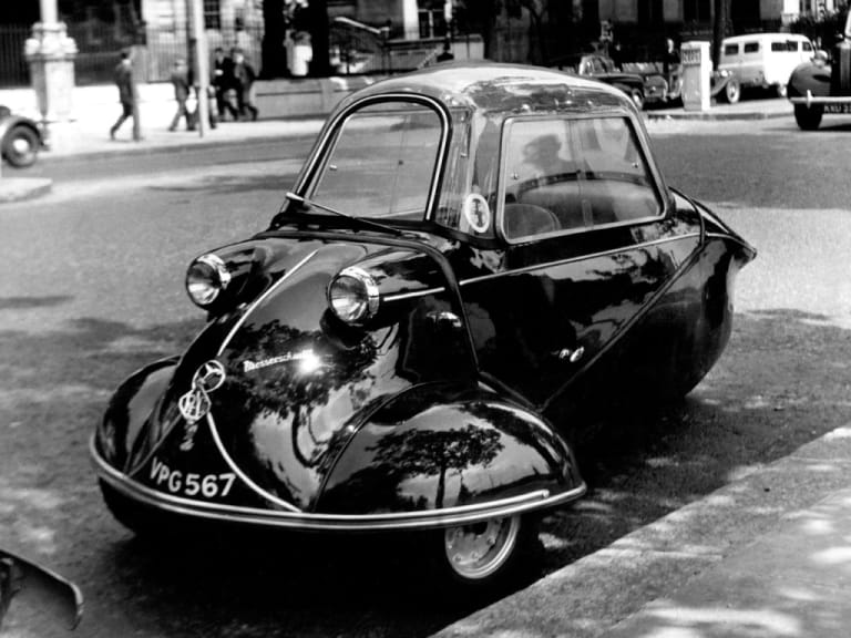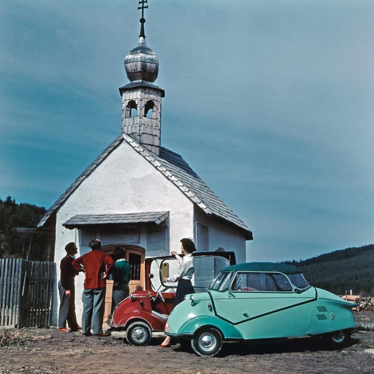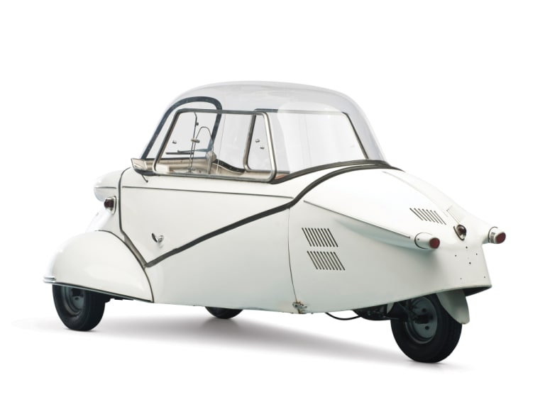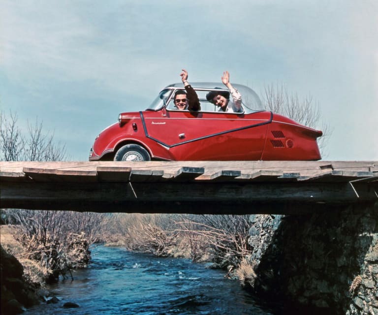 La fin de la guerre avait sonné le glas de l’activité aéronautique de Messerschmitt. Pour survivre, la firme fondée par Willy Messerschmitt se diversifia donc tous azimuts : éoliennes, maisons préfabriquées ou machines à coudre. Ce n’était cependant pas suffisant pour retrouver une activité digne de ce nom. De son côté, Fritz Fend, qui travaillait autrefois chez Messerschmitt, notamment sur l’avion à réaction Me262, développait des tricycles destinés aux handicapés ou blessés de guerre, mus soit par la force des bras, soit par de tous petits moteurs. Ces tricycles dénommés Flitzer se vendirent à quelques centaines d’exemplaires, et Fend voit déjà plus grand, s’imaginant remotoriser l’Allemagne.