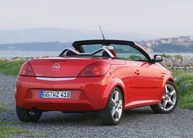 Développée sur la plate-forme de la Corsa C lancée en 2000, elle en garde un vague air de famille, mais ses lignes sont plus carrées, plus tendues, plus musclées ! La solution retenue est sans doute la clé de son insuccès : la Tigra Twin Top est une stricte deux places quand toutes ses concurrentes proposent 4 places (enfin, 2+2 serait plus juste pour qui a déjà voyagé à l’arrière d’une 206 CC par exemple). Chez Opel comme chez Heuliez, personne n’y voyait un obstacle jusqu’à ce que l’on constate la mévente de cette Twin Top, loin des objectifs initiaux. Heuliez tentera bien de proposer à Opel une version 4 places (projet 4435) mais le sort de la Tigra était déjà scellé.