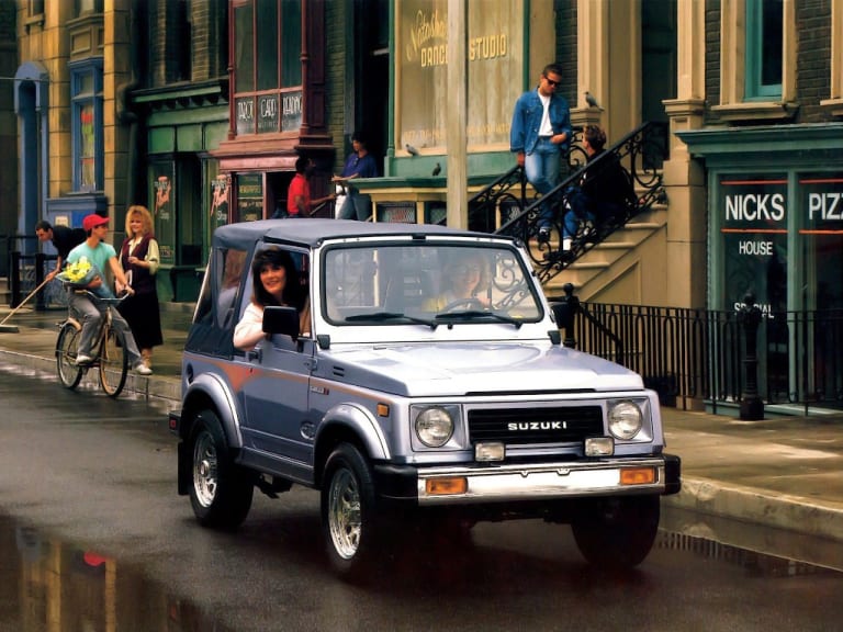 Erreur ! Le Samurai est bien japonais, mais construit sous licence par le constructeur espagnol Santana, lâché par son partenaire Land Rover en ce début des années 80. Pour sauver sa peau, Santana aura l’idée de génie de signer avec Suzuki cet accord de licence permettant à la marque japonaise de ne pas être touchée par les quotas sur les modèles japonais, son petit 4×4 étant fabriqué en Europe. Cet accord se poursuivra d’ailleurs avec le Vitara, que Santana fabriquera jusqu’en 1999, date à laquelle Suzuki (pourtant actionnaire à 49 % de l’entreprise espagnole) décidera de voler de ses propres ailes (surtout, les quotas ont disparus depuis belle lurette, et le partenariat n’a plus vraiment lieu d’être). Après Land Rover, c’est Suzuki qui lâche Santana qui, malgré un accord avec Iveco, ne s’en remettra jamais et fera faillite en 2011 (lire aussi : Iveco Massif / Campagnola).