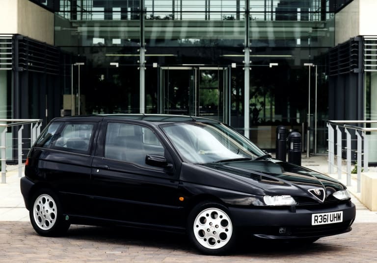 Vous rappelez-vous la dernière fois que vous avez croisé une Alfa 145 sur la route ? Non, sans doute. Modèle exotique peu goûté par une clientèle panurgique et déjà obnubilée par les Allemandes, le successeur de la 33 n’a pas eu la partie facile durant ses sept ans de présence au catalogue et n’a objectivement fait que de la figuration sur le marché français ; les survivantes sont donc rarissimes. Présentée à l’été 1994, la 145 semblait pourtant bien née. Élaborée sur une plateforme enfin moderne – contrairement à la 33, qui n’était qu’une Alfasud abâtardie à certains égards –, bien mieux construite que sa devancière (ce qui n'était pas très difficile, il est vrai), la compacte milanaise retenait d’emblée l’attention par un design engagé, voire même clivant, qui contrastait violemment avec le conservatisme en vigueur dans le segment des compactes auquel elle se rattachait. Les Italiens avaient manifestement choisi leur camp : il ne s’agissait en aucun cas de singer la VW Golf, référence incontestée de sa catégorie, mais de proposer une automobile foncièrement différente de tout ce qui existait alors – et aussi de tout ce qu’Alfa avait pu concevoir en la matière depuis un quart de siècle.