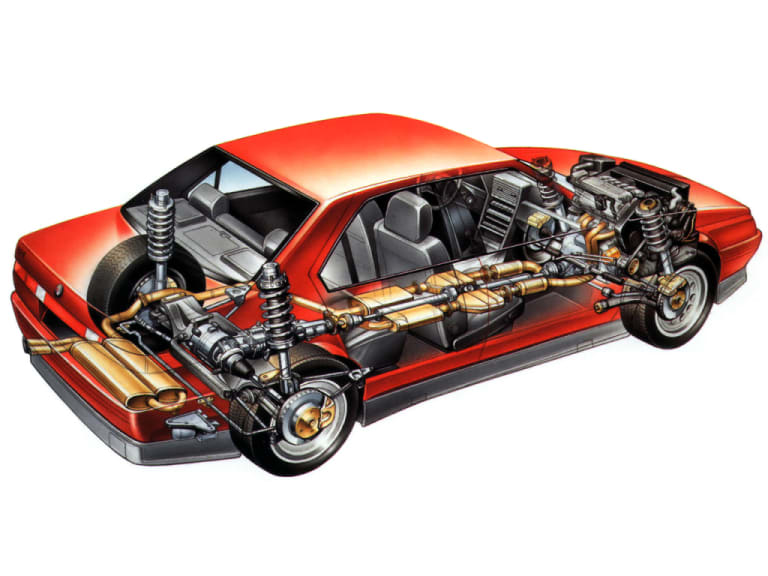 Si, après Subaru et AMC ne l’oublions pas, Audi a ouvert la transmission intégrale au monde des berlines et des coupés, la solution choisie pour la 164 Q4 est plus sophistiquée que celle des quatre anneaux. Q quoi ? Ce terme fait bien sur référence au quadrifoglio verde, le célèbre trèfle à quatre feuilles qu’arborent les Alfa les plus sportives. Le quatre rappelle, vous l’avez deviné, les quatre roues motrices. Baptisé du technoïde patronyme « Viscomatic », le système est d’une efficacité redoutable, avec une répartition du couple AV/AR variable à 100%. On vous fait grâce d’un exposé à la Michel Chevalet. Retenez tout de même qu’aux manettes se trouve un « cerveau » électronique pilotant un viscocoupleur, lequel abrite un différentiel épicycloïdal. Relié par une dizaine de capteurs à l’ABS et à la gestion électronique du moteur, le Big Brother venu de la patrie d’Arnold Schwarzenegger « sait » en permanence à quel régime tournent moteur et roues.