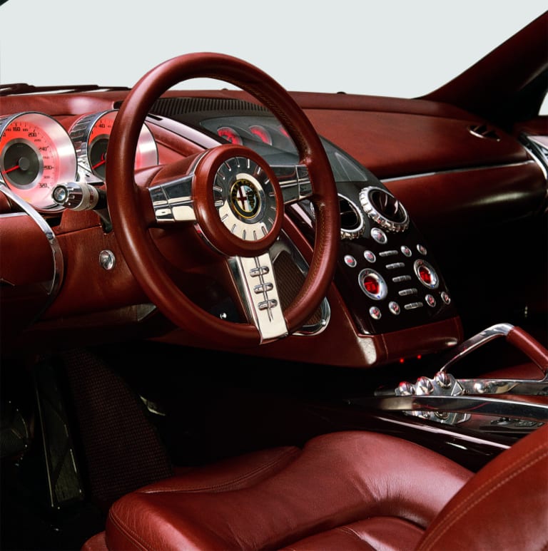 Son long capot avant contrastait avec un arrière bombé, ses grosses roues posaient la voiture sur le sol et laissaient s’exprimer une puissance affirmée, et confirmée par un V8 Maserati de 4.2 litres et 390 chevaux qu’on trouvait depuis cette année justement sous le capot du Coupé remplaçant la 3200 GT ! Il fallait être visionnaire pour imaginer cette œuvre d’art à la place des 916 dans la gamme au trèfle. Au contraire, à l’époque, on voyait cette Brera tout en haut de la gamme, GT de luxe dont l’intérieur soigné confirmait le positionnement.