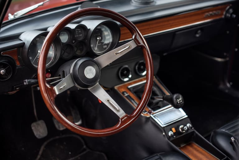 La demande pour les coupés Bertone, tous modèles, est assez soutenue aujourd’hui. Les prix aussi. Se négociant entre 25.000 et 29.000 euros en 2014 à 2015, les GT 2000 Véloce peuvent désormais même atteindre des prix au-dessus des 45.000 euros, et les 1750 GT encore plus. Pour notre amateur de belle mécanique, son Alfa lui rappelle « l’ambiance de ma jeunesse. L’atmosphère de son intérieur est extraordinaire. J’adore le volant en tulipe et l’odeur d’essence mélangée à l’odeur du skaï. En rajoutant le bruit du moteur, c’est fantastique! J’aime aussi ses jantes qui sont assez rares. On ne les voit pas beaucoup, celles-là. » Effectivement, ces jantes spécifiques Cromodora étaient exclusivement pour la GT 2000 Véloce.