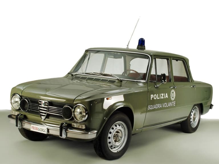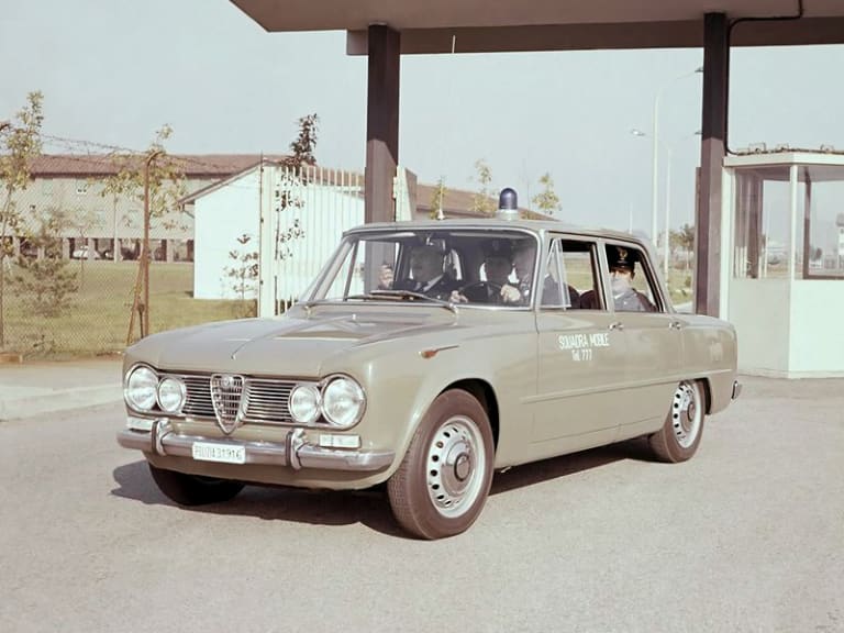 De toute façon, on n’achetait pas la Giulia pour son physique, mais pour son coeur. Avec le temps, sa ligne a bien vieilli et retrouve un charme qu’il lui manquait dans les années 60 mais à l’époque peu importait : la voiture allait vite et son moteur dérivé d’un bloc Alfa Romeo Aviation offrait au conducteur un son rauque inimitable et enchanteur, c’était bien l’essentiel. Les Carabiniers, les policiers ou les douaniers l’avaient bien compris eux-aussi, s’équipant de Giulia t.i. parfois “boostées” pour jouer aux gendarmes et aux voleurs sur les “autostrades” italiennes.