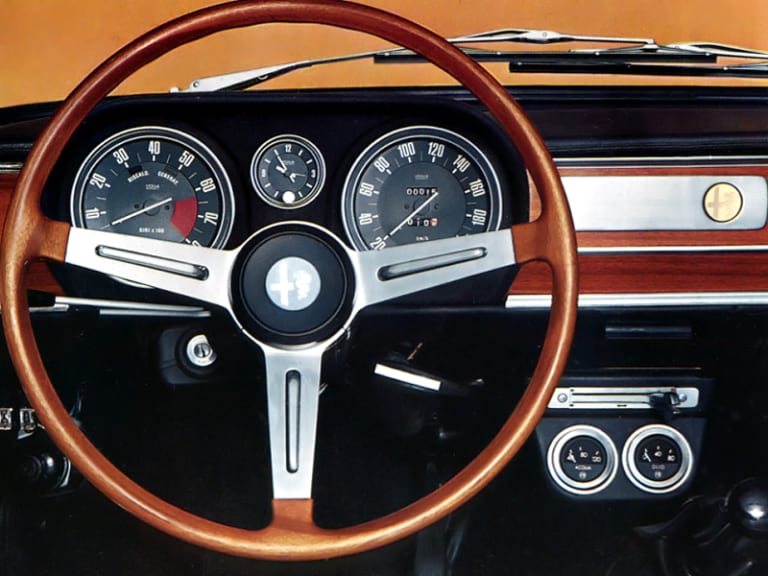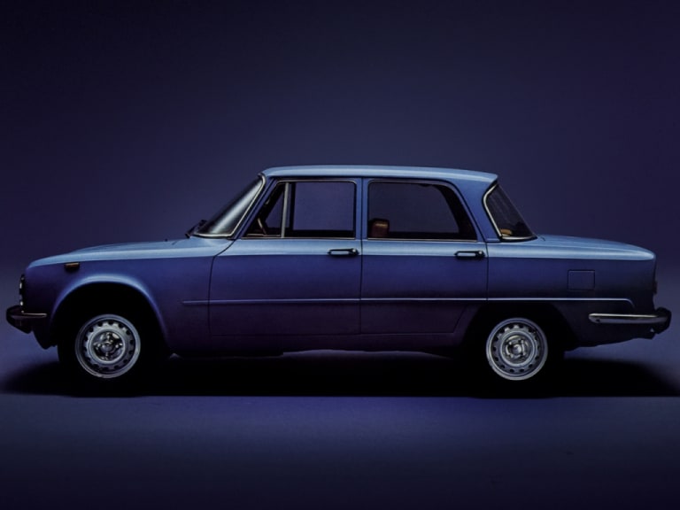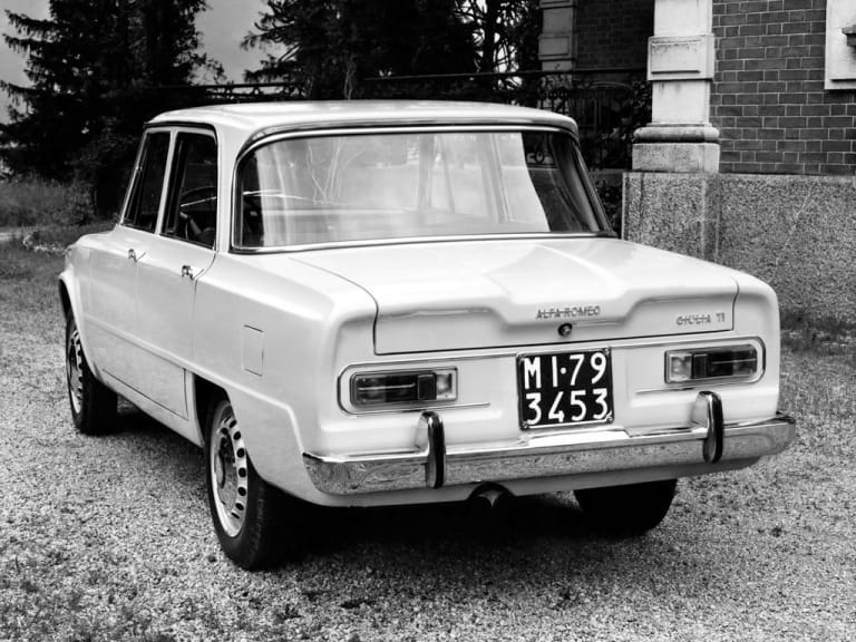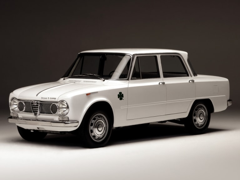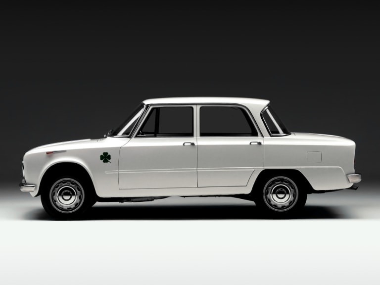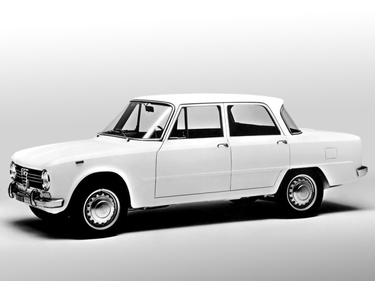 L’Alfa Romeo Giulia devait remplacer la Giulietta qui avait déjà posé les jalons du concept de la berline sportive italienne. Elle en reprenait d’ailleurs les moteurs 1 300 et 1 600 ainsi que la boîte 5 vitesses, mais s’offrait un tout nouveau châssis. Elle fut une des premières voitures au monde à être étudiée en soufflerie pour soigner son aérodynamique. Avec un Cx de 0,34 couplé à la puissance de son moteur, la Giulia s’offrait des performances impressionnantes.