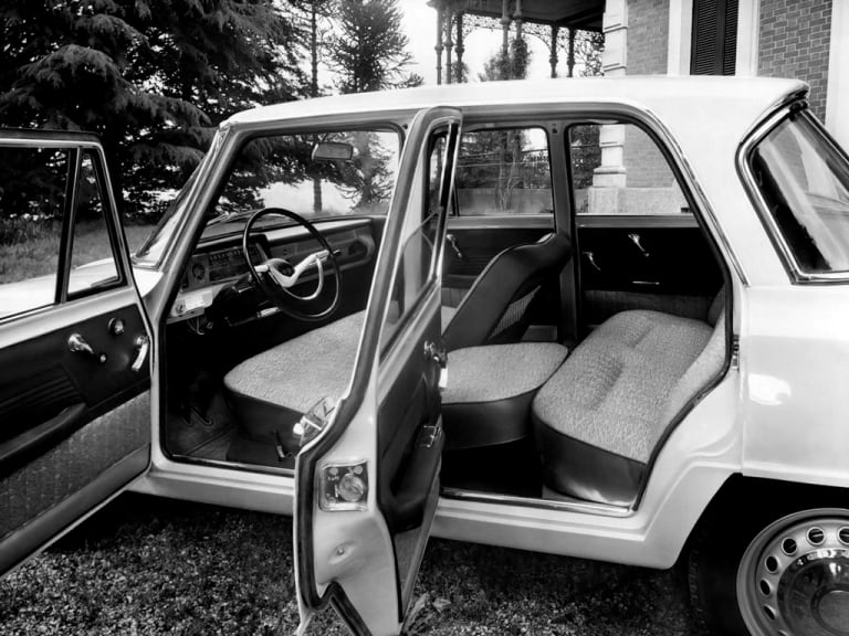 Pourtant, tout n’était pas moderne sur la Giulia : pont arrière rigide, freins à tambour sur les premiers modèles. Autant dire qu’il fallait un certain courage pour aller chercher ses limites. Présentée en 1962 dans sa version sportive t.i. (pour Tourismo Internazionale) dotée du 1 600 de 92 chevaux, elle séduira rapidement les testeurs, moins les esthètes qui regrettaient sans doute les rondeurs de la Giulietta. Mais l’époque était au “tout carré” pour les berlines : il suffit de voir Renault et ses 8 et 10. La Giulia, au moins, tentait d’adoucir tout cela par des artifices stylistiques plutôt réussis, comme cet ourlet courant sur ses flancs, ou son capot avant plissé, sans compter son regard hypnotique.