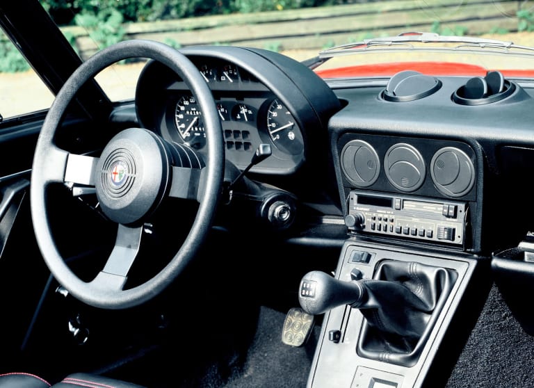 Les choses auraient pu en rester là mais, peut-être sous l’influence d’un segment de marché redevenu très dynamique avec notamment l’apparition de la Mazda MX-5, le Spider Alfa va bénéficier, en 1990, d’une ultime refonte destinée à faire patienter la clientèle jusqu’à la commercialisation de son successeur éponyme – mais très différent dans sa conception, puisque le futur Spider sera une traction avant étroitement dérivée de la Fiat Tipo, synergie de groupe oblige… Après des années d’errance, Alfa retrouve une bienheureuse inspiration et corrige adroitement le tir avec une poupe redevenue enfin regardable, l’intégration de feux arrière rappelant ceux de la berline 164 s’avérant plutôt réussie. C’est dans cet équipage que le Spider achève son parcours, après 124 000 exemplaires produits, mettant un terme à une longue lignée – c’était alors la dernière Alfa encore dotée du légendaire double arbre maison. Pour autant, cette « série 4 » n’est pas la plus convaincante sur le plan esthétique, car sa relative modernité n’a pas que des avantages, avec en particulier un mobilier de bord taillé dans un plastique assez douteux. Mais l’auto supporte sans difficultés un service quotidien, tout en délivrant des sensations authentiques, le tout pour un prix encore très abordable. Entre nous, que demander de mieux ?