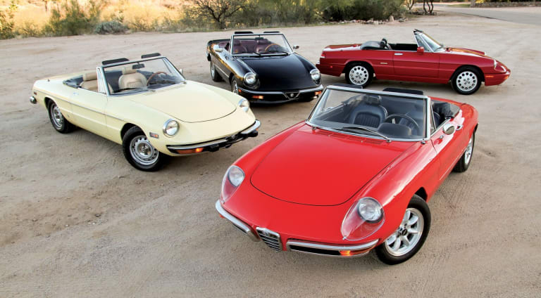 Même si cette dénomination a été, depuis lors, plusieurs fois réutilisée par la marque milanaise, évoquer le Spider Alfa renvoie spontanément au Duetto apparu pour la première fois au printemps de 1966 et qui, sous diverses appellations et au fil de quatre séries successives, a perduré vingt-huit années durant au catalogue. Si cette longévité est due tout autant aux difficultés financières récurrentes d’Alfa dans les années 70 et 80 qu’au charisme inhérent au modèle, elle n’en demeure pas moins impressionnante et offre aux collectionneurs d’aujourd’hui un choix extrêmement large. Ainsi, que vous soyez amateur de sensations vintage ou à la recherche d’une auto recelant les avantages d’une certaine modernité et pouvant assurer un service quotidien, vous trouverez forcément le Spider qui répondra à vos attentes. Pour une automobile aussi désirable, ce n’est pas si courant…