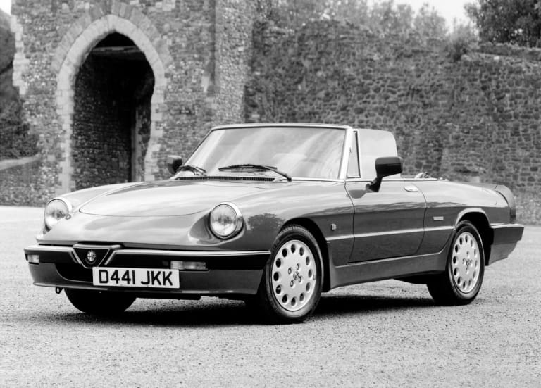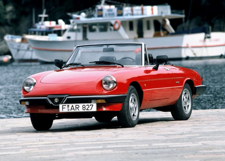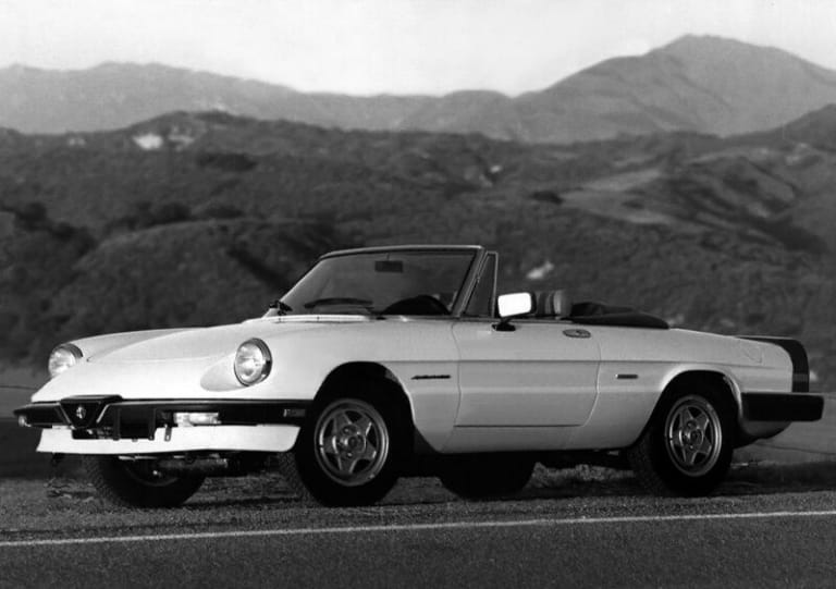 Pour l’année-modèle 1983, le Spider Alfa se modernise donc, et la conséquence la plus visible de ce premier abâtardissement réside dans la greffe d’un spoiler avant et d’un becquet arrière aussi appropriés sur cette carrosserie qu’un moteur Diesel sous le capot d’une Porsche (oui, je sais). À l’époque, on ne peut pas dire que les alfistes patentés aient sauté de joie, mais le pire restait encore à venir avec les ultimes modifications apportées à la version « Quadrifoglio Verde » pour 1986, comportant notamment d’odieuses jupes latérales et des appendices « aérodynamiques » (les guillemets sont voulus) encore plus pathétiques que leurs devanciers. Il faudra attendre 1990 pour que le Spider se réincarne une dernière fois sous la forme d’une série 4 à nouveau regardable, même si l’auto ne retrouva jamais l’admirable finesse de ses débuts. De l’avis général, cette série 4 est la plus recommandée pour ceux qui veulent pouvoir rouler aussi fréquemment que possible, et peut même convenir pour un usage quotidien.