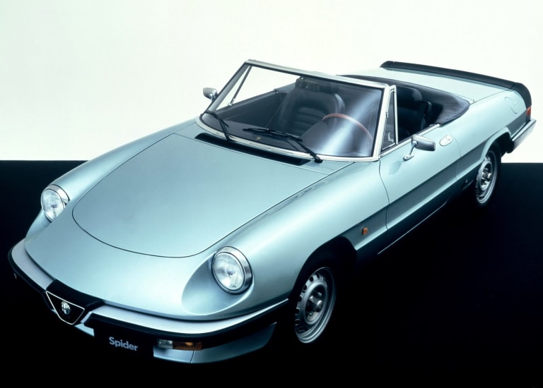 Et puis, bien sûr, il y a ce style, ce design – dû pour l’essentiel au grand Aldo Brovarone pour le compte de Pininfarina – qui, jusqu’en 1982, aura été préservé du pire, l’évolution la plus notable étant intervenue dès 1970 avec l’abandon de la poupe caractéristique des premiers modèles (que les amateurs surnomment Osso di Seppia, c’est-à-dire « os de seiche ») au profit d’un arrière à pan coupé (Coda Tronca) esthétiquement plus orthodoxe et permettant d’améliorer la logeabilité de la malle. C’est sous cette apparence que le Spider va traverser la décennie 70, avec ce design dont la sereine obsolescence a charpenté la séduction, à l’instar d’autres survivantes échappées des sixties – nous songeons par exemple aux Porsche 911, Saab 99, Fiat 124 Spider ou Daimler DS 420. Comme on s’en doute, la longue immuabilité de l’Alfa aura moins relevé d’un choix délibéré des dirigeants milanais que d’impératifs financiers compromettant le renouvellement du modèle – mais après tout, la Mercedes SL R107, la Jaguar XJ-S ou la Ford Capri n’ont-elles pas, elles aussi, connu des carrières inhabituellement longues ? Pourtant, plus un modèle est ancien et plus son restylage peut s’avérer délicat (si vous en doutez, jetez donc un œil aux drolatiques évolutions de la FSO Polonez ou encore à la tragique Bristol Blenheim) et c’est la raison pour laquelle, si les moyens manquent, mieux vaut ne procéder qu’à des modifications de détail – c’est la meilleure façon d’éviter les conneries. Un axiome dont la pertinence n’est hélas pas parvenue jusqu’aux bureaux directoriaux de la firme d’Arese…