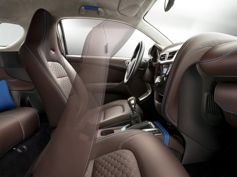 Qu’est-ce qui distingait une Cygnet & Colette d’une autre Cygnet ? Une teinte blanche, des rétros, jantes, capot moteur et jantes rehaussé d’une délicate touche de bleu (le bleu de Colette), un logo Cygnet & Colette dessiné par Thomas Fattorini, des fauteuils et banquette matelassés en cuir « chocolat » (avec liseré bleu), comme le labrador de la patronne de la boutique, Oscar, des petits cousins bleus pour égayer la banquette arrière, et tout un tas de petits détails qui rendent cette Cygnet différente et exclusive.