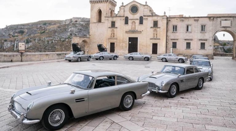 S’ouvrant sur un long pré-générique tourné en Italie, dans la ville de Matera, No Time To Die y met en scène la DB5. Ou plutôt les DB5, car ce ne sont pas moins de neuf exemplaires de l’Aston qui sont mis à contribution, dont seulement deux sont authentiques. Les autres sont de fidèles répliques, dotées d’une carrosserie en fibres de carbone, d’une planche de bord reprenant le dessin original mais réalisée à l’aide d’une imprimante 3D et, surtout, d’un ensemble moteur/boîte issu de la BMW M3 E46, marquant ainsi le retour discret de la firme bavaroise après les Z3, Série 7 et Z8 jadis conduites par Pierce Brosnan. Violemment malmenées, poursuivies, mitraillées, truffées de gadgets inédits, les fausses DB5 jouent parfaitement leur rôle – même un expert s’y tromperait aisément. En septembre 2022, l’une d’elles a été vendue pour la modique somme de 3,2 millions de dollars, ce qui est certes un peu cher pour une voiture inutilisable sur la voie publique mais, que voulez-vous ? quand on aime, on ne compte pas… Reste à savoir si la DB5 reviendra dans le prochain Bond, mis en scène par Denis Villeneuve et encore en pré-production à l’heure où ces lignes sont écrites !