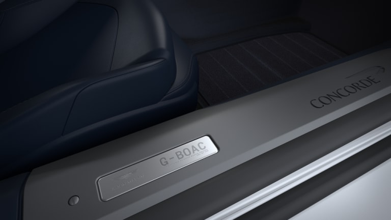 Mis à part cette drôle de justification, il faut reconnaître que cette édition spéciale fait son petit effet, avec sa couleur blanche semblable au joyau de l’aéronautique franco-britannique, ses touches de rouge et de bleu à l’arrière, évoquant discrètement le logo de British Airways sur la dérive. Une plaque signée des PDG d’Aston Martin et de British Airways portant les lettres G-BOAC assure l’exclusivité du modèle tandis qu’une silhouette de Concorde orne le toit. À l’intérieur, la sellerie en cuir bleu se pare de logos “Concorde” tandis qu’un clin d’oeil se glisse à l’intérieur du pare-soleil : l’altitude maximale du supersonique (60 000 pieds) et la vitesse de croisière (Mach 2,04).