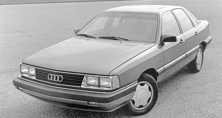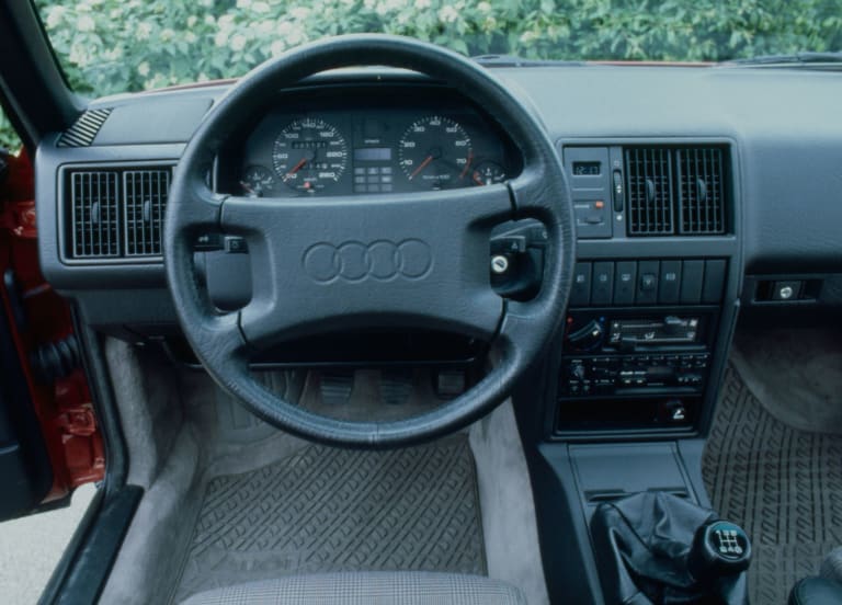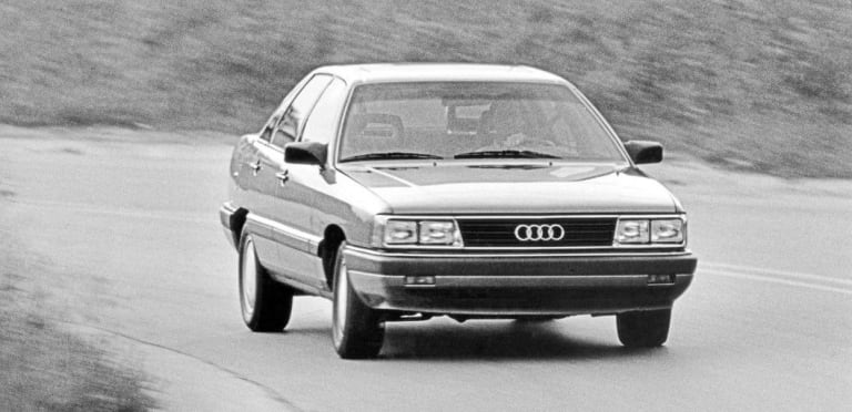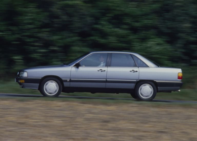 Héritière de la 200 première du nom dévoilée en 1979, la nouvelle venue en reprend la philosophie lors de son apparition à l’été 1983 : il s’agit en quelque sorte d’une « super 100 », plus luxueuse et disponible en plusieurs motorisations atmosphériques ou turbo – mais seules les 200 suralimentées seront importées en France, recevant, en exclusivité, un turbocompresseur KKK qui transforme les ressources du cinq-cylindres. Par rapport à l’ancienne 200 5T, les progrès du moteur ne sont pas considérables sur le papier, la puissance passant de 170 à 182 ch ; mais les exceptionnelles qualités aérodynamiques de la nouvelle carrosserie font le reste en autorisant une vitesse maximale de 230 km/h. Une valeur qui, certes, sera très vite dépassée dans les années qui vont suivre mais qui, à l’époque, impressionne les observateurs car, quand la 200 Turbo déboule sur l’Autobahn, ni les BMW ni les Mercedes ne peuvent alors suivre le rythme. Handicapée par son profil hérité des seventies, la 528i E28, en dépit des indéniables qualités de son six-cylindres dont la puissance avoisine celle du groupe Audi, se voit ainsi reléguée vingt bons kilomètres/heure derrière la voiture d’Ingolstadt…
