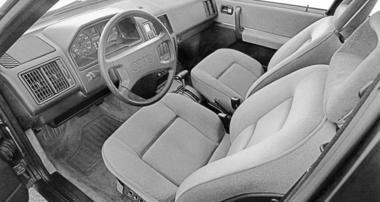 VAG France avait, de surcroît, choisi de jouer la carte du « tout compris » en matière d’équipements – même si un copieux catalogue d’options demeurait disponible –, ce qui contrastait sensiblement avec les mœurs en vigueur à Munich ou Stuttgart… De la sorte, la 200 Turbo, avec, entre autres, ses quatre vitres électriques, ses jantes alu et sa climatisation automatique de série (une première en Europe !) ridiculisait, sur ce plan, une vieillissante Mercedes 280 E imposant de coûteuses options pour se hisser au niveau de l’Audi. Bien sûr, tout n’était pas rose et, comme c’était le cas pour d’autres grosses tractions à moteur turbo de son temps (je pense à la Renault 25, à la Lancia Thema ou à la Saab 9000), la 200 ainsi gréée ne brillait pas par sa motricité si son conducteur avait le pied lourd, en particulier sur le mouillé. Problème résolu dès 1984 avec l’apparition de la 200 quattro, animée par le même moteur que la Turbo mais dotée, comme son nom l’indiquait, de la fameuse transmission intégrale maison. Unanimement saluée pour ses qualités de grande routière « tous temps », la nouvelle venue renvoya dès lors son aînée dans un anonymat aussi injuste qu’inévitable, la Turbo s’apparentant, en comparaison, à une sorte de talentueux brouillon, par ailleurs vite rattrapé par la très convaincante Mercedes 300 E… Figurant au catalogue de la marque jusqu’en 1990, l’auto se fait rare aujourd’hui sur le marché de la collection mais, comme il y a quarante ans, conserve ses adeptes, modérément convaincus par les avantages des quatre roues motrices et appréciant les coups de pied où je pense que le turbo prodigue à la demande. Un choix original, à n’en pas douter !
