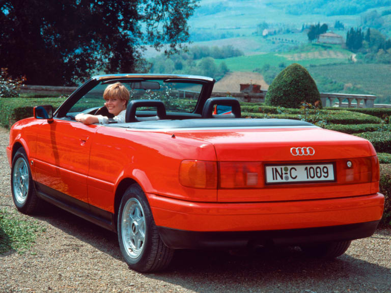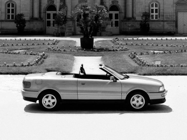 Présentée au Salon de Genève 1991, le Cabriolet sera commercialisé en mai de la même année. C’est là que les appellations prêtent à confusion. Au même moment, la berline 80 passe de la version 89/B3 à la version 89/B4. Le Coupé lui, continue de s’appeler 8B/B3, tandis que ce nouveau cabriolet prend le nom de 8G/B4. Pourtant, les filiations sont un peu plus compliquées. Tout commence avec le Coupé, qui reçoit un châssis de B3 mais raccourci, renforcé, et doté de suspensions arrières modifiées et d’un nouveau système de suspension avant. Ce châssis inspirera celui de la berline 80 « 89/B4 », mais sera utilisé tel quel par le Cabriolet qui donc utilise un châssis B3 malgré son nom B4 : vous suivez toujours ?