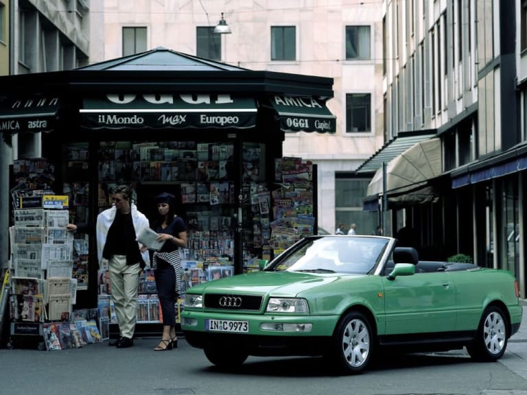 Parfois, je regrette cette époque où je pouvais dire que j’aimais les Audi. Aussi, aujourd’hui, j’ai décidé de revenir en 1991, pour vous parler d’un modèle que j’ai aimé surtout pour sa ligne : la Cabriolet 8G/B4. Cette voiture est souvent appelée Audi 80 Cabriolet, mais sachez qu’elle n’a jamais officiellement porté le patronyme de la berline compacte 80, tout comme le Coupé dont elle dérive étroitement.