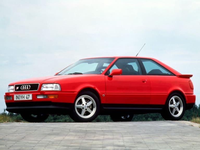 A l’origine, Audi avait décidé de ne proposer que le Coupé (type 8B, assimilé à l’Audi 80 B3 bien que sa plate-forme soit spécifique) avec le 5 cylindres de 2.2 litres (turbocompressé) développant 220 ch et accouplé à une boîte de vitesses manuelle à 5 rapports (un moteur déjà vu sur l’Audi 200). Lancé en avril 1990, il rencontra rapidement un certain succès commercial : jusqu’en juin 1992, il s’en vendra 5 766 exemplaires. Surtout, la S2 bénéficia d’un trou d’air chez BMW : la M3 E30 cessait sa production en décembre 1990 tandis que l’E36 n’apparaissait qu’en janvier 1992.