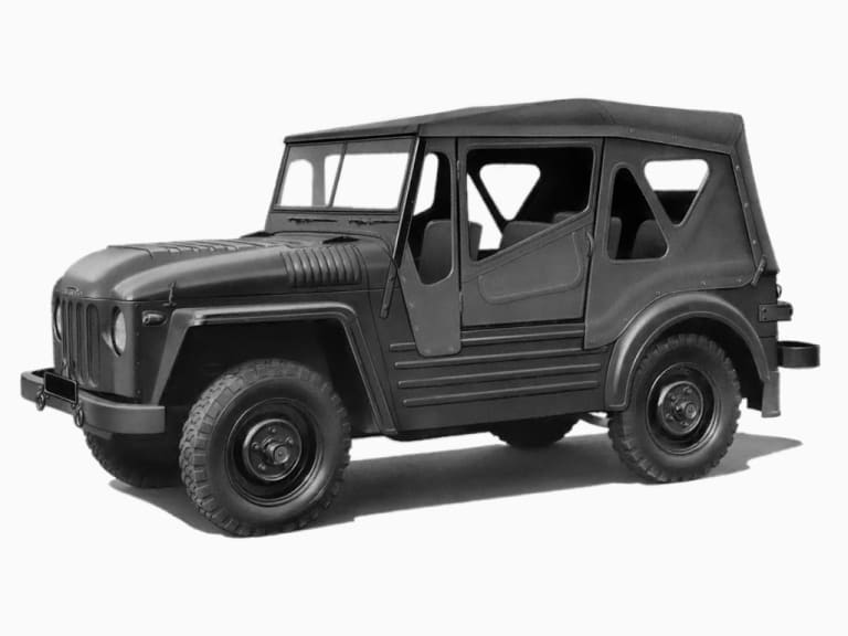 Ce n’était pas la première fois qu’Austin tentait de se faire une place au soleil sur le marché du 4×4. En 1951, le constructeur avait proposé à l’Armée le Champ (FV1801A), un sérieux concurrent doté d’un moteur Rolls Royce de 80 chevaux dont les suspensions avaient été dessinées par Alec Issigonis : un tout terrain a priori robuste, qui remportera un appel d’offre de 15 000 véhicules destinés à venir renforcer le parc de Land Rover de l’armée britannique. Malheureusement, le coût de production s’avéra excessif, la maintenance complexe, tandis que le Champ n’offrait pas la même polyvalence que le Land. Le contrat fut alors revu à la baisse, à 4000 exemplaires. Austin tenta bien d’en vendre des dérivés civils, mais il fallait se rendre à l’évidence : le Champ était un échec et la production cessa dès 1956.