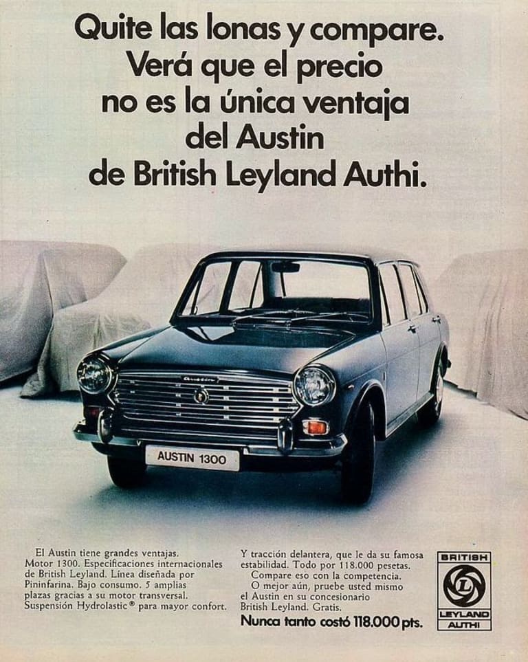 Aujourd’hui nous sommes samedi, et j’avais envie de vous faire découvrir une petite marque espagnole, pour changer : Authi, pour Automoviles de Turismo Hispano Ingleses. Vous ne connaissiez pas ? Moi non plus, mais Authi (plus souvent nommée aussi Leyland-Authi) l’est pourtant des passionnés de la Mini puisque le constructeur espagnol la produira tout comme Innocenti en Italie.