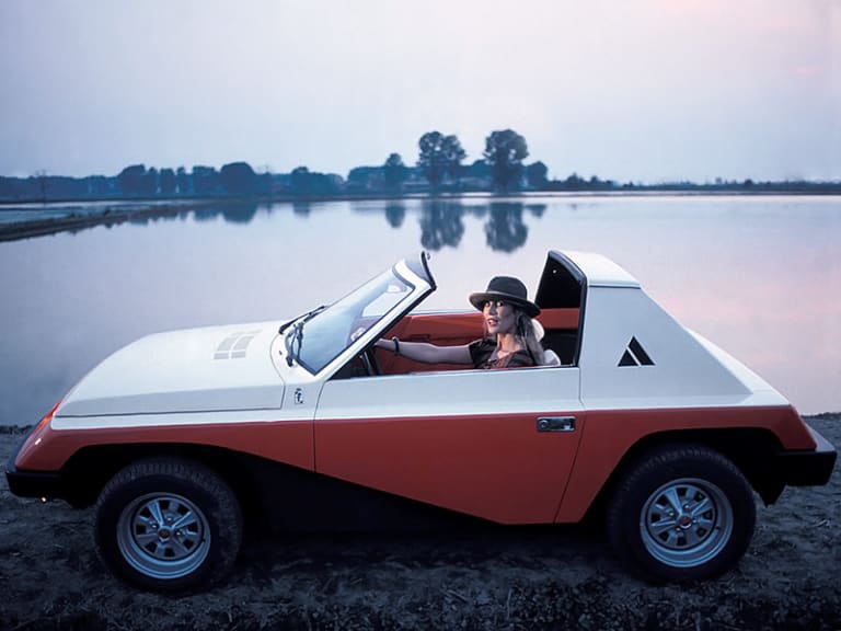 En réalisant l’article sur l’Autobianchi A112 Abarth (lire aussi : Autobianchi A112 Abarth), je suis tombé sur le prototype Giovani, présenté en 1973, et j’en suis resté baba. On ne reconnaît plus rien de l’A112, mises à part les dimensions. Une sorte de Meyers Manx (lire aussi : Meyers Manx) avec la tête au carré. Car avec ce proto dessiné par Diego Ottina, de chez Pininfarina, on est loin des rondeurs du dune buggy californien. Pour information, Diego Ottina créa ensuite les dessins de la Testarossa (lire aussi : Ferrari Testarossa) et de la berline Pinin (lire aussi : Ferrari Pinin).