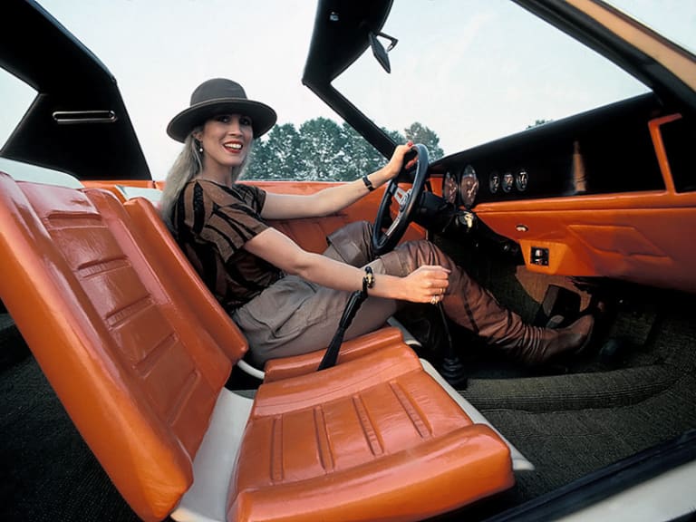 Mais en 1973, Ottina n’en est pas encore là, et avant de s’attaquer à Ferrari, c’est sur Autobianchi qu’il se fait la main. Ce petit buggy est, comme son nom l’indique, destiné aux jeunes, mais restera un prototype unique basé sur l’A112 Abarth 58 hp. Dommage car son look est vraiment original, une sorte d’extrapolation du logo d’Autobianchi à l’échelle d’une voiture, à base de triangle et d’arrêtes vives, accentuées par la peinture tricolore orange/blanche/noire. A l’arrivée, on a droit à un étonnant mélange de modernisme comme on savait le faire dans les 70’s, et de rétro grâce à sa peinture qui lui créé un profil d’ancienne. Etonnant !
