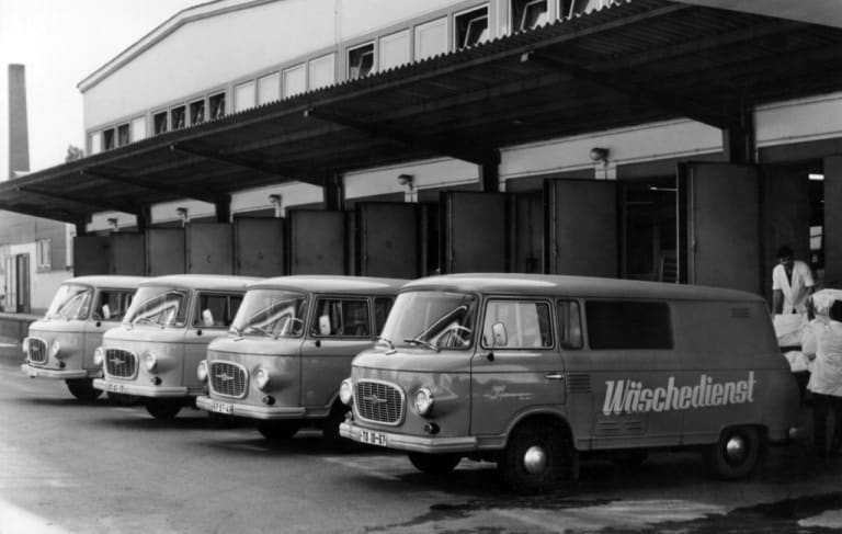 Les études concernant le Barkas commencèrent au début des années 50, mais il fallut attendre 11 années avant de voir apparaître le B1000. En effet, les besoins de l’Allemagne de l’Est avaient changé entre temps, tout comme les possibilités d’approvisionnement en acier venu d’URSS. Au bout de 5 ans, on changea donc de fusil d’épaule, optant pour une camionnette aux dimensions et au poids contenu, utilisant moins d’acier grâce à la structure monocoque. On opta aussi à ce moment là pour la traction, ce qui n’était pas si courant à l’Est. D’entrée de jeu, il était prévu que le B1000 se déclinerait en une multitude de versions : fourgon, fourgon mixte, ambulance, minibus, etc.