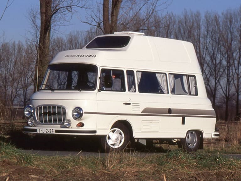 Côté moteur, le premier 3 cylindres 2 temps de 900 cm3 développant 28 chevaux fut vite remplacé, dès 1962, par un 991 cm3 de 42 chevaux (un moteur qu’on retrouvait aussi sous le capot des Wartburg 311/312, puis sur la Wartburg 353). Durant presque toute sa carrière, le B1000 se contentera de ce petit moteur, ce qui, vue l’offre en RDA, n’était pas un problème, mais qui le devint à l’export, au point que l’exportateur Belge tenta d’en diffuser des versions dotées d’un 4 cylindres diesel Ford… Mais la chute du Mur donna des complexes, montrant l’écart technique qui s’était installé entre temps, et on décida d’offrir au Barkas un 4 cylindres Volkswagen de 1.3 litres. Devenu B1000-1, il est le plus rare des Barkas, avec 1961 exemplaires seulement fabriqués entre 1989 et 1991, date de l’arrêt de la production. Westfalia en proposa même une version « camping », encore plus rare.