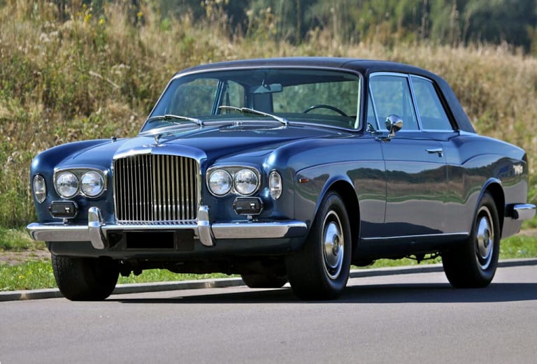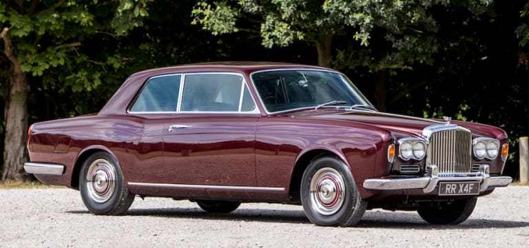 C’est en 1966, à Genève et Francfort, puis au cours de l’été 1967 que furent successivement dévoilées les variantes à deux portes du duo Rolls-Royce Silver Shadow/Bentley T présenté en 1965 et qui avait d’ores-et-déjà fait couler beaucoup d’encre. La carrosserie de type « ponton » des nouvelles berlines de Crewe, jugée trop anodine par d’aucuns — on entendit même des esprits sacrilèges les comparer à la plébéienne Peugeot 403 —, abritait cependant une authentique révolution technique tout à fait inattendue de la part d’un constructeur réputé pour son attachement viscéral à certaines traditions. Songez, pour ne prendre que cet exemple, que la série des Silver Cloud n’eut jamais droit à autre chose que des freins à tambour, au motif que les freins à disque étaient trop bruyants ! Dans ces conditions, l’apparition d’une automobile à structure monocoque et dont la suspension, adoptant enfin les quatre roues indépendantes, faisait de surcroît appel à un brevet Citroën pour la mise en œuvre de fonctionnalités hydrauliques strictement inédites chez R-R, provoqua une onde de choc dont les carrossiers indépendants furent les premières victimes. La fin des châssis séparés (à l’exception des Phantom V puis VI, assemblées jusqu’en 1992 à quelques centaines d’unités et selon des méthodes ancestrales) provoqua par exemple la disparition de James Young, maison centenaire qui, dans les soubresauts de l’agonie, choisit néanmoins de dessiner une ultime création sur la base de la série « SY ». Toutefois, la carrosserie 2-door saloon commise en 1967 par le carrossier londonien — qui n’exista qu’en coupé et fut fabriquée à seulement 25 exemplaires en Rolls et 15 en Bentley — s’avéra nettement moins inspirée que la version « usine », qui se caractérisait par un très élégant ressaut au niveau de l’aile arrière, déterminant de la sorte une poupe à notre sens bien plus réussie que celle de la berline. S’il y a du génie dans ce profil, il a suffisamment marivaudé avec l’aristocratie pour aboutir à un design à la fois délicat et intemporel qui, faute de moyens pour renouveler le modèle, perdura près de trois décennies…