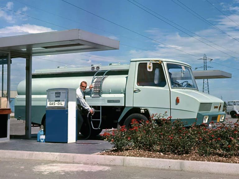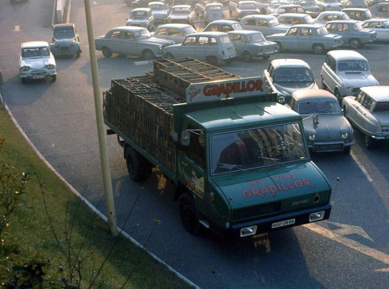 Sous le capot, on trouvait un 4 cylindres de 5,9 litres développant 120 chevaux, accolé à une boîte à 5 rapports synchronisés ! De quoi atteindre les 100 km/h en charge, pas mal tout de même, le tout dans un confort digne d’une voiture. Dès la première année, le Stradair va cartonner, avec 1500 commandes. Pourtant, il ne sera produit que pendant 5 ans, jusqu’en 1970, à environ 3000 exemplaires. Les raisons d’une si courte carrière ? D’une part, et malgré l’enthousiasme des débuts, le système Airlam connut des problèmes de fiabilité (les coussins d’air pouvaient se dégonfler lorsque le camion, en charge, restait trop longtemps à l’arrêt) rapidement réglés mais entâchant la réputation du Stradair. Ensuite, la situation « capitalistique » de Berliet changea : rachetée par Michelin, la société lyonnaise intégrait alors la partie poids lourds de Citroën, condamnant d’une certaine manière les deux modèles pour un modèle « commun ». Enfin, la limitation de circulation dans Paris, tout à coup réduite à 9m2 (le Stradair en mesurait 11m2), le condamnait à rester au delà du périphérique.