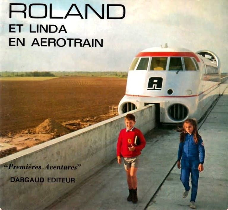 Le vrai truc intéressant c’est qu’il en reste des vestiges, cette fameuse ligne Saran-Ruan, avec sa plate-forme centrale dépecée, et ses deux « terminus » mobiles permettant de remettre la rame dans le bon sens. Il en reste aussi des souvenirs vivaces chez les uns chez les autres, notamment parce que l’Aérotrain eut droit à une présence médiatique sans précédent (mis à part le Concorde), particulièrement dans Paris-Match (Match comme disaient mes parents) mais aussi dans un livre publié chez Dargaud, sous forme d’enquête policière : deux jeunes enfants, Roland et Linda, qui autour de cette fameuse ligne Saran-Ruan (avec quelques libertés géographiques), se retrouvent mêlés à une étrange intrigue.