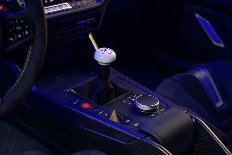 L’auto étant destinée à être commercialisée, BMW a néanmoins choisi de ne pas partir d’une feuille blanche pour concevoir la 3.0 CSL des temps modernes, qui dérive donc directement du coupé M4 G82, même si la quasi-totalité des éléments de carrosserie ont été redessinés. Entièrement assemblée à la main, la nouvelle CSL évoque sans vergogne la variante dite « Batmobile » de son aînée, arborant notamment un double aileron à l’arrière. Bénéficiant – et c’est heureux – d’une calandre nettement moins hideuse que celle de la M4 de série, la livrée de la carrosserie reprend les couleurs fétiches de la division M et le nombre « 50 » figure sur les portières en référence au cinquantième anniversaire d’icelle. Sous le capot, le six-cylindres biturbo S58, poussé à 560 ch, est exclusivement associé à une boîte de vitesses manuelle à six rapports dont la commande s’orne d’un pommeau blanc, seule touche de retro design de l’engin. Tarifée à 765 000 euros en 2023, la 3.0 CSL est immédiatement devenue une automobile de collection particulièrement convoitée ; l’année même de sa sortie, RM Sotheby’s en a vendu un exemplaire pour plus d’un million d’euros. La perpétuation de la légende est à ce prix !