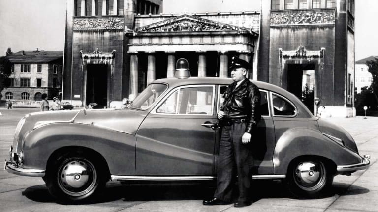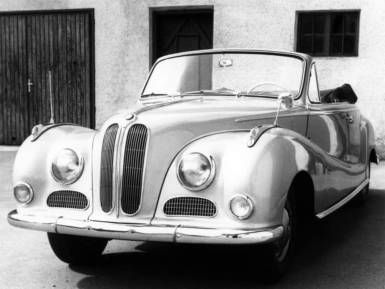 Ainsi, dans le registre du goût, incertain et subjectif, la surnommée Barockengel (ange baroque), peut-être à cause de son aspect boursouflé comme les angelots des églises bavaroises, marquait une rupture en avril 1951, sur le stand BMW du premier IAA (Internationalen Automobil-Ausstellung) de Francfort. Il s’agissait du premier salon automobile de la récente RFA couverte de zones et troupes d’occupations occidentales. Il s’y trouverait des clients munis de dollars pour acquérir des véhicules de cet ordre. La 501 devenue 502 avait pour mission de relancer la marque autour de voitures coûteuses susceptibles de générer de meilleures marges. Comme le Rideau de fer avait aussi séparé BMW, l’usine d’Eisenach, située en zone d’occupation soviétique et donc confisquée par l’occupant, n’en finissait plus de sortir des productions d’avant-guerre, comme la 321 ou la 327. Elle suivait une autre histoire avec la EMW 340 au L6 2 litres de 55 ch. Á l’Ouest, l’enjeu industriel relevait d’une forme de soft power via la société de consommation émergente.