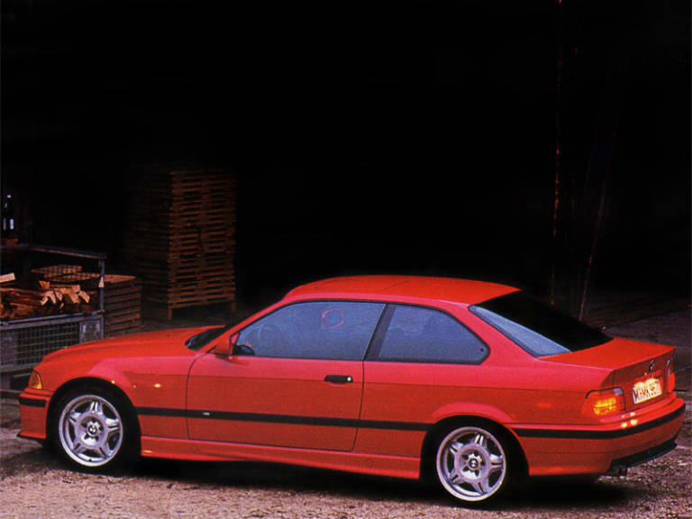 Sous le capot ensuite, l’E36 abandonnait les 4 cylindres de la M3 E30 (200ch) pour s’offrir un 6 cylindres en ligne de 3 litres de cylindrée et 286 ch : de quoi mettre tout le monde d’accord (une version GT de 295 ch sera produite en série limitée en 1995, lire aussi: M3 GT E36). Mieux, en 1996, la M3 s’équipait d’un 3,2 litres porté à 320 ch. Avec cette cavalerie, et les qualités intrinsèques de l’E36, on eut alors entre les mains une authentique sportive capable d’en découdre avec des Porsche (la 993 contemporaine, lire aussi : Porsche 911 « 993 ») ou des Ferrari (la 348, puis ensuite la 355). Il faut dire qu’à l’époque, ce niveau de puissance était rare, surtout sur un modèle dérivé de la grande série.