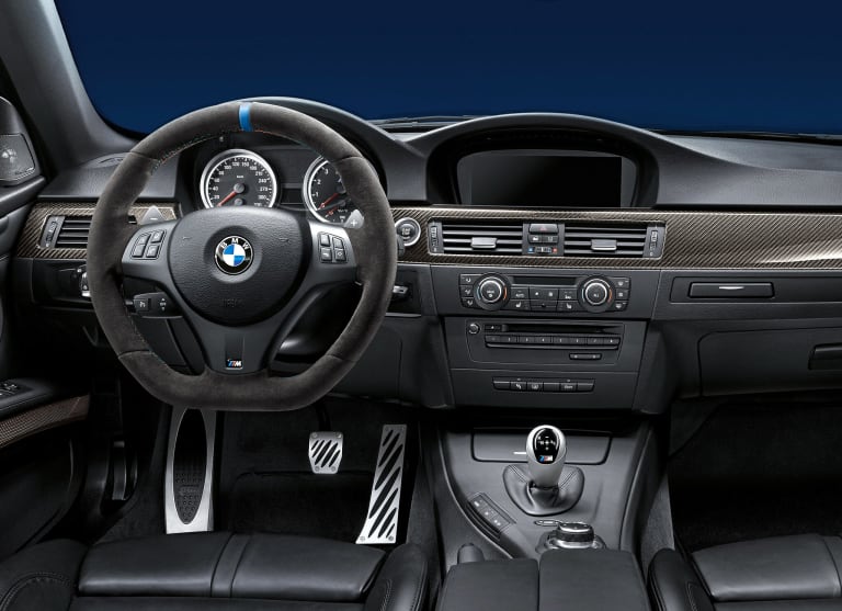 Sur ce plan, la recette mise au point au début des années 1990 pour la génération E36 n’a pas fondamentalement changé : la M3 demeure l’une des très rares automobiles agrégeant des performances dignes d’une bonne GT contemporaine et des aspects pratiques – habitabilité, confort général, capacité d’emport – qui lui permettent d’assurer un service quotidien avec une grande docilité. Pourtant, le coupé présenté à l’automne 2007 transige, pour la première et unique fois dans l’histoire du modèle, avec une tradition indissociable de la firme : le glorieux six-cylindres en ligne qui faisait les beaux jours de la M3 depuis quinze ans cède la place à un V8 inédit à ce niveau de gamme chez BMW, répondant ainsi à l’offensive lancée par Mercedes-Benz avec sa confidentielle C 55 AMG dévoilée trois ans plus tôt et elle aussi dotée d’un huit-cylindres. On pourra toujours objecter que la philosophie de la C-Klasse, exclusivement disponible avec une boîte automatique, n’est pas tout à fait comparable à celle de la M3 ; de fait, la génération E90 est, à ses débuts, proposée uniquement avec une boîte manuelle ; il n’empêche que la comparaison entre les deux voitures vient spontanément à l’esprit, tandis que les caractéristiques du nouveau V8 BMW rappellent l’autre Bavarois du plateau – j’ai nommé le 4,2 litres blotti depuis 2006 sous le capot de l’Audi RS4…