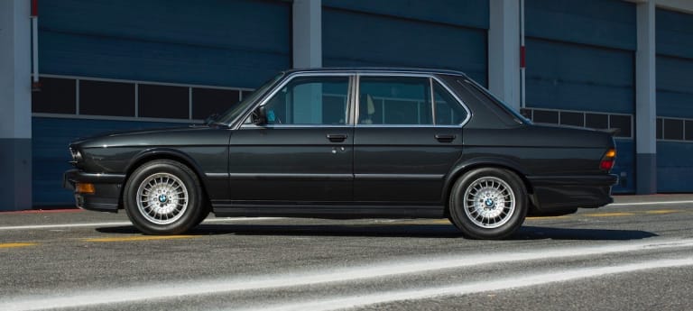 En août 1987, L’Automobile Magazine publie un comparatif opposant la M5 à la Lancia Thema 8.32. Cruelles pour la voiture de Turin, les performances mesurées le rappellent alors sans ambages : pour quelque temps encore, la BMW est la plus performante berline de série que l’on puisse trouver sur le marché. Ses 247 km/h en pointe et, plus encore, les 26,5 secondes qu’elle demande pour parcourir le kilomètre départ arrêté, ou bien les 6,6 secondes nécessaires pour atteindre les 100 km/h se rapprochent, en toute simplicité, des chronos d’une Ferrari 328 GTB… Il est vrai qu’à son couchant, la M5 coûte à peine moins cher que la berlinette italienne mais demeure sensiblement moins coûteuse qu’une Porsche 911 Turbo dont la sénescence se fait chaque jour plus visible. D’autant que la partie châssis de la BMW, en dépit de son âge avancé, assure des qualités routières à la hauteur de son fabuleux moteur. Laurent Chiapello écrit : « Sa tendance naturelle dans les virages serrés est au sous-virage, mais il suffit d’un judicieux petit coup d’accélérateur pour la faire passer à un survirage qui ne surprendra que très rarement. Et lorsqu’on a le loisir de se laisser aller à de plus amples glissades, c’est un vrai plaisir que de contrôler cette machine en contrebraquage et à l’aide de légères pressions du pied droit. » On l’aura compris, cette M5-là se conduit « sans filtre » (à l’exception d’un ABS qui semblera bien rudimentaire en comparaison des systèmes actuels) et, sur le sec tout du moins, et à condition de rester au-dessus des 4000 tours, l’engin constitue aujourd’hui encore une merveilleuse école de pilotage et d’humilité pour ceux qui aiment vraiment conduire. Il y a quatre décennies, ses heureux possesseurs oubliaient très vite la désuétude de sa carrosserie en comparaison du tempérament de l’auto ; de nos jours, elle ne fait que renforcer son charme. Saurez-vous lui résister ?