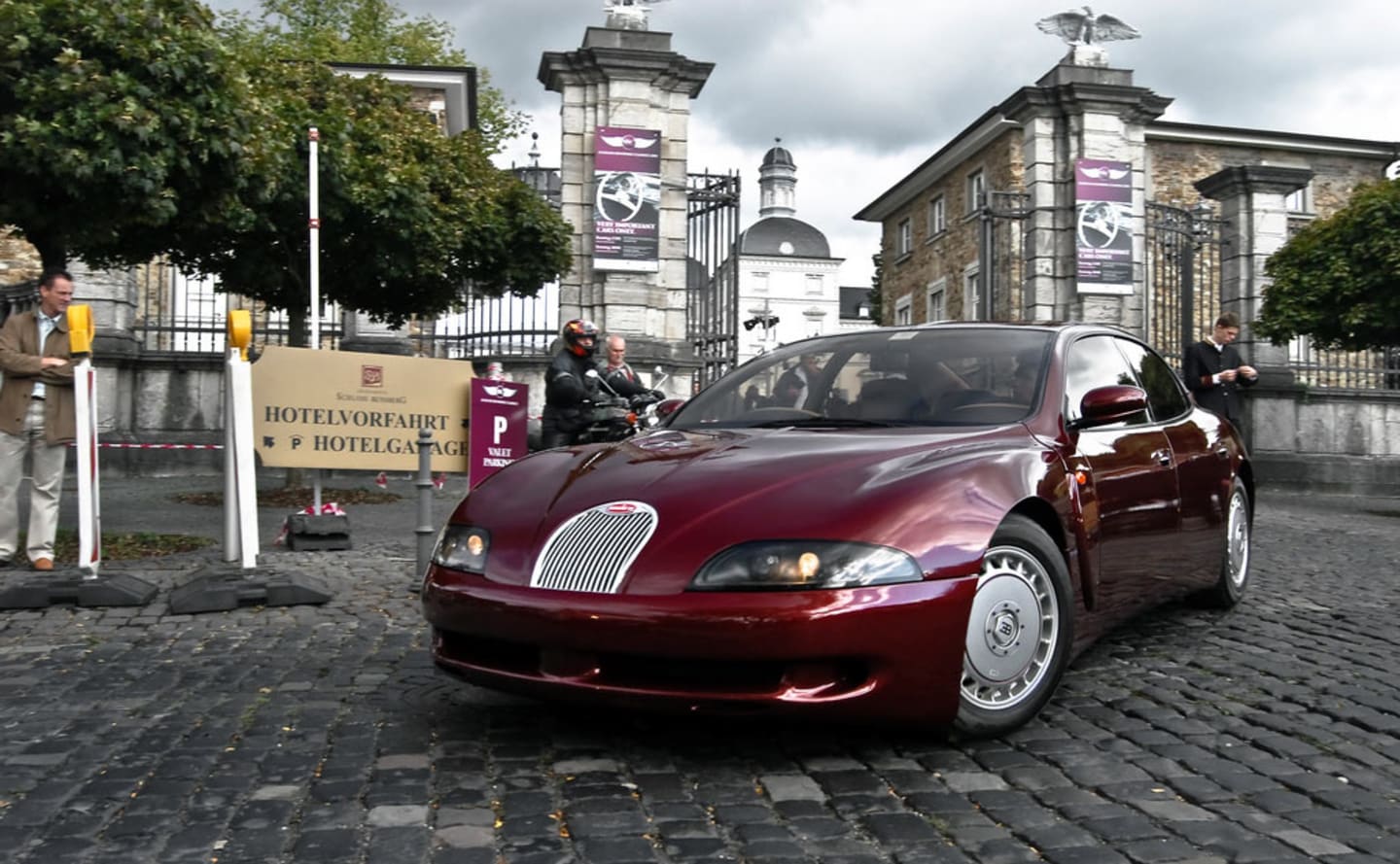 Malgré son nom prestigieux, le Bugatti de Romano Artioli faisait figure de parvenu dans le petit monde du luxe et des supercars, où les places sont chères et l’entre-soi apprécié. Son EB110 ayant fait son petit effet en 1991, il s’attaqua donc au créneau de la grande berline de luxe, en confiant à Giugiaro et Italdesign le soin de renouveler le genre tout en renouant véritablement avec le passé stylistique de la marque (contrairement à l’EB110 dont seul un petit fer à cheval et le logo rouge trahissaient l’origine). Il fallait se différencier d’une concurrence frileuse, tout en touchant le cœur des amateurs de l’ancienne Bugatti, celle d’avant-guerre.