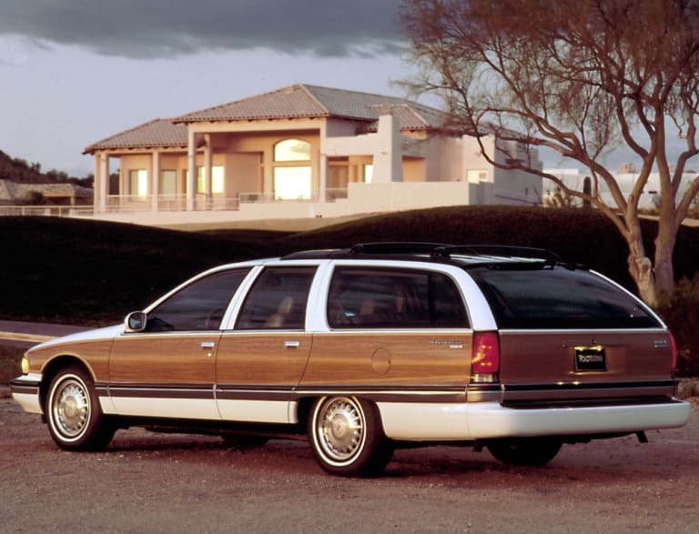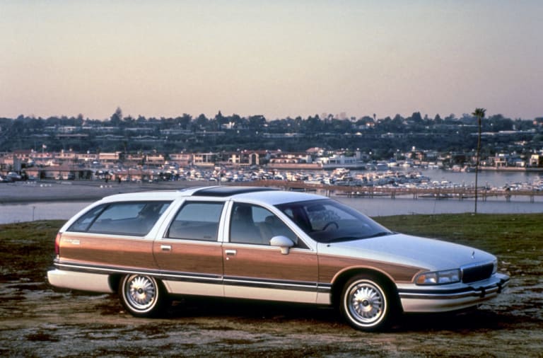 L’Electra Station Wagon, le prédécesseur de la Roadmaster Malgré le succès des vans (l’équivalent du monospace) tels que le Chrysler Voyager, ou plus tard le Pontiac Trans Sport (lire aussi : Pontiac Trans Sport), les américains ont toujours gardé un certain penchant pour le break familial, et chez Buick, on maintenait dans la gamme l’Electra Station Wagon avec bien entendu ces fameux panneaux en (faux) bois. Mais au début des années 90, la marque décida de donner un coup de jeune à ce créneau en exhumant un nom mythique pourtant disparu depuis 1958, Roadmaster (maître de la route, excusez du peu).