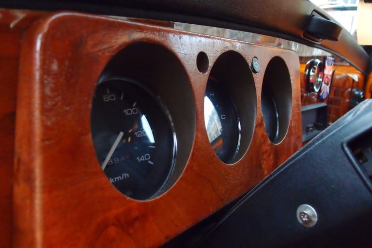 Changer l’intérieur a été la redécouverte de la patience. Changer les garniture de portes, remplacer le tissu des sièges par du vinyle rouge, installer un tableau de bord en bois, installer une moquette rouge et insonoriser le plancher signifie coller, percer, découper, agrafer, pester, recommencer, dégrafer, rager, recoller, décolérer et enfin, souffler. L’ambiance intérieure me plaît, cosy, rehaussée par de grosses et discrète enceintes qui crachent du Bob Marley sans jamais saturer les basses. Une vision du Paradis.