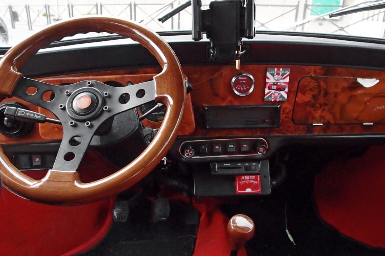 Mon châssis a été réparé pour 150 euros par le garage qui l’entretient depuis. Audra, à Bois-Colombes, dans les Hauts-de-Seine, est spécialisé dans la Mini de la carrosserie à la mécanique. On y change les cônes, on remplace les crémaillères, on répare la seconde qui craque et on transforme des MK5 en MK1 – avec le comodo qui clignote. On fait des miracles avec la maudite électricité anglaise et on dompte l’indomptable carburateur. On éduque les têtes (des clients), on traque le moindre bobo la cigarette au bec et l’expérience au bout des doigts. Et quelques conseils sont donnés quand surviennent les questions existentielles dues au manque d’argent: changer le berceau arrière rouillé ou la crémaillère rincée ? Remplacer la direction sur les rotules ou les soufflets essoufflés ? Si l’argent est le nerf de la guerre, le manque d’argent est à la base de la réflexion sur la bonne stratégie pour garder une Mini en vie. J’ai bien fait de ne pas acheter une Audi TT MK1, en fait.