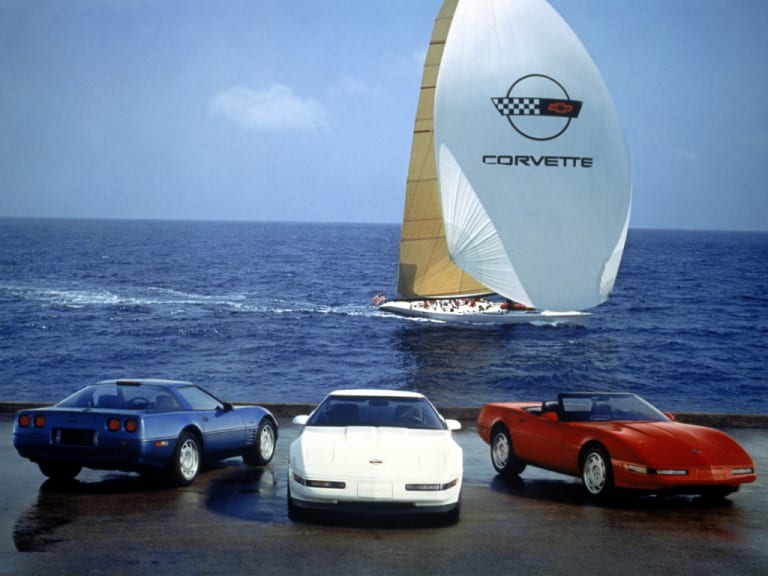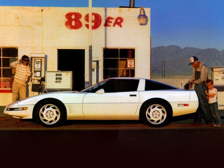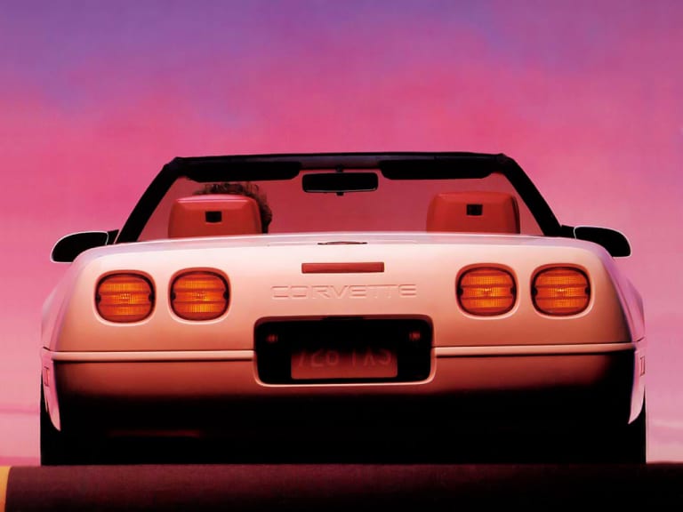 « You got your tape deck and your brand new Chevrolet » chantait Billy Joel en 1972 dans Captain Jack, un morceau dont le récit incite davantage au désespoir qu’à l’allégresse, mais qui remonte à l’époque où le nom de Chevrolet signifiait encore quelque chose dans la mémoire collective nord-américaine. L’histoire de la firme remonte à 1911 et, si elle ne se circonscrit bien évidemment pas à la Corvette, son identité, telle qu’elle pouvait encore être ressentie vers la fin du siècle dernier, lui doit néanmoins beaucoup. Il n’est pas exagéré d’affirmer qu’à elle seule, la Corvette a inventé une catégorie d’automobiles : celle des américaines sportives — bien qu’il faille manier cet adjectif avec précautions : certes, la première génération dégouline de charme, son esthétique demeure fascinante à explorer mais la fiche technique des Corvette les plus anciennes n’avait vraiment pas de quoi enthousiasmer les sportsmen. Même dans la première moitié des années 1950, un six-cylindres d’avant-guerre — rebaptisé sans rire Blue Flame pour l’occasion — associé à une boîte automatique à deux vitesses ne pesait pas lourd face aux brillantes capacités d’une Jaguar XK 140 et il fallut l’arrivée du V8 pour que l’auto commence à être prise un peu plus au sérieux. Depuis lors, le huit-cylindres est aussi indissociable de la Corvette que le flat-six l’est de la Porsche 911 mais, contrairement à celle-ci, la Chevrolet a connu plusieurs ruptures stylistiques et philosophiques ; et, de fait, entre la C1, roadster avant tout calibré pour les promenades en bord de mer et la C8, berlinette éminemment compétente, il y a un véritable gouffre conceptuel que les décennies écoulées ne suffisent pas à expliquer. Il y a déjà longtemps que ni les moteurs ni les qualités routières des Corvette ne font plus rigoler personne et le respect dont le modèle bénéficie à l’heure actuelle doit beaucoup au virage substantiel opéré par la génération C4 qui nous occupe aujourd’hui.