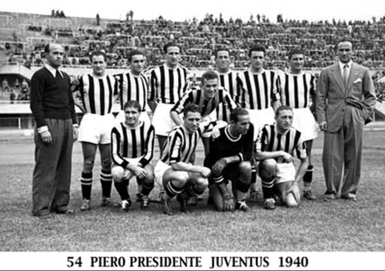 Piero Dusio au centre (en haut) et avec l’équipe de football de la Juventus (dont il fut le président de 1940 à 1947, en bas).