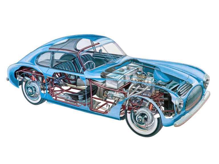 Pour cette 202, Piero Dusio va imposer un cahier des charges drastique : “large comme une Buick, aussi basse qu’une voiture de Grand Prix, le confort d’une Rolls Royce et la légèreté d’une monoplace”. Ces contraintes a priori antinomiques vont obliger l’ingénieur Giovanni Savonuzzi et le carrossier Alfredo Vignale à innover. Si la mécanique reste un 4 cylindres Fiat 1 089 cc légèrement modifié par Carlo Abarth pour développer 55 puis 60 chevaux (une version 75 chevaux arrivera plus tard), elle récupère le châssis tubulaire de la D46 et s’offre une carrosserie en aluminium pour la première fois étudiée en soufflerie.